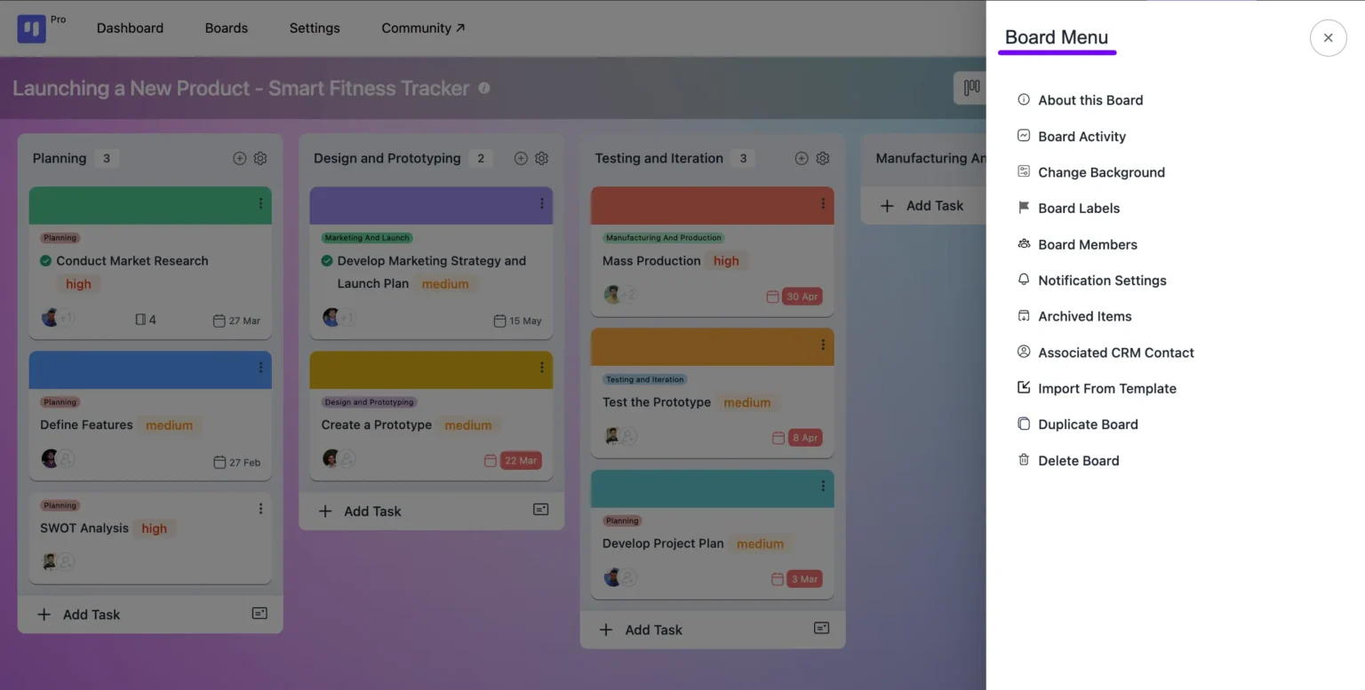 Task Cards are the core elements of a board, displaying key task details. Each card includes: